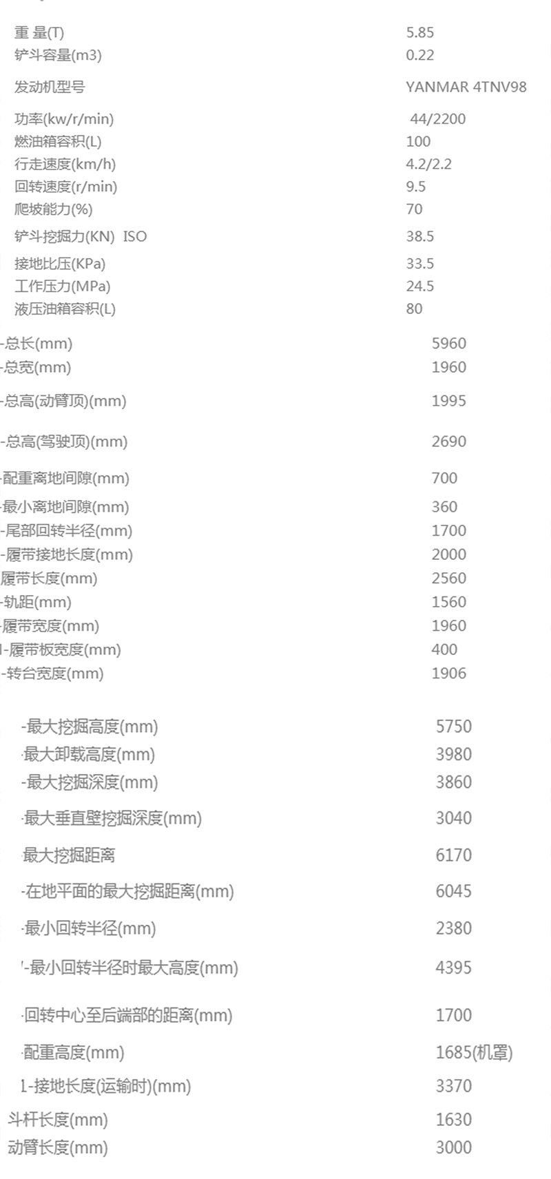 DLS60微型履帶挖掘機(jī)參數(shù)