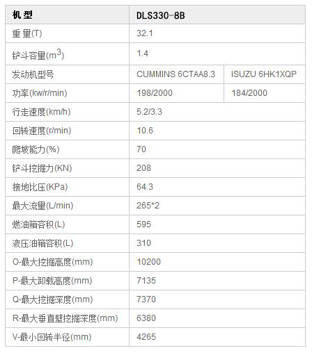 DLS300-8B型挖掘機(jī)動(dòng)力采用康明斯發(fā)動(dòng)機(jī),動(dòng)力強(qiáng)勁,功率可達(dá)198KW,液壓系統(tǒng)配置大排量主泵,達(dá)到530L/min,增加緩沖閥,先進(jìn)可靠,提高了操作的柔和性。采用智能電控技術(shù),作業(yè)效率顯著提升,工作裝置強(qiáng)化,動(dòng)臂、斗桿長度和斗桿油缸進(jìn)行了優(yōu)化,大大提高了整機(jī)耐久性和使用壽命,全新駕駛室,視野開闊,冷暖空調(diào)效果優(yōu),操作智能化,維護(hù)保養(yǎng)更加便捷。