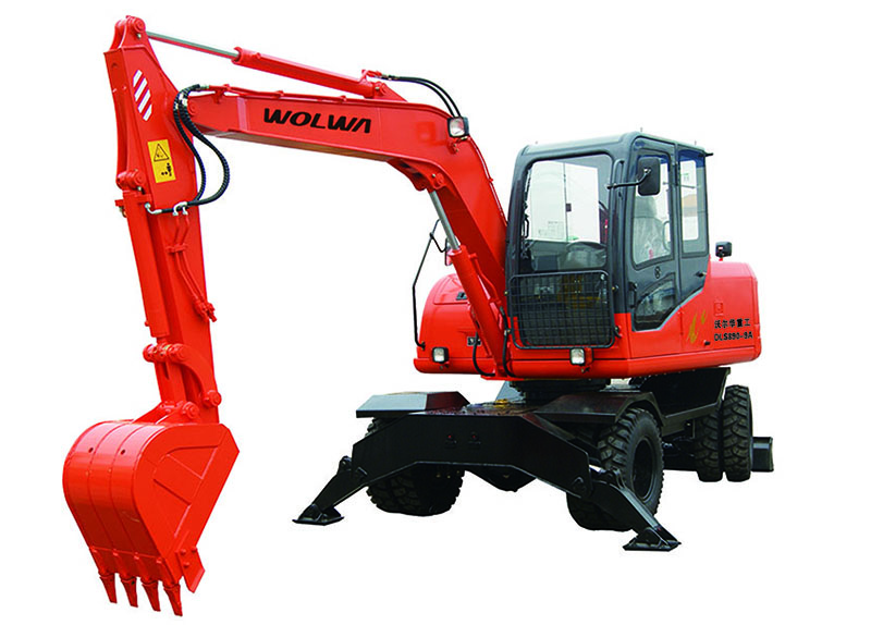 7.外形自主設(shè)計(jì),大氣、穩(wěn)重。外圍采用敞開式機(jī)構(gòu),便于維修、保養(yǎng)。帶有大臂工作燈、后大燈,便于夜間作業(yè)。