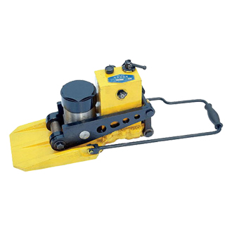 1、先將機座插入鋼軌底部,鋼軌搭到起道杠桿托板上,手提梁水平放置,旋緊回油閥桿。