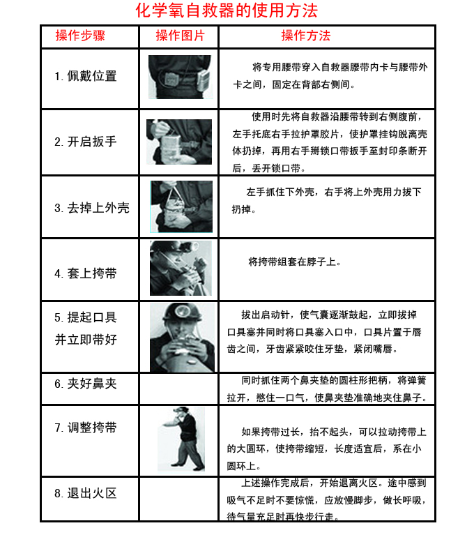五、化學(xué)氧自救器佩戴方法: