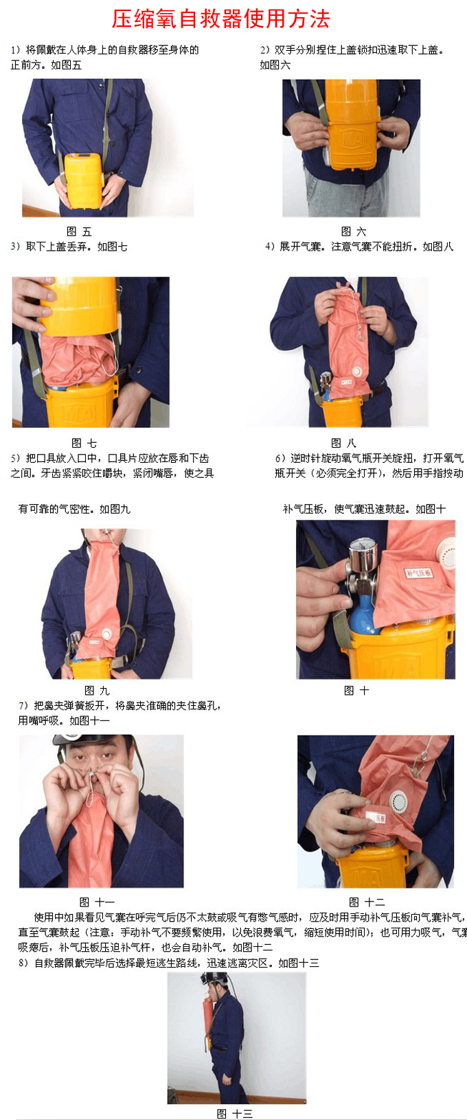 2、采用循環(huán)呼吸方式,呼出的氣體通過清凈罐中的CO2吸收劑,將CO2吸收,余下的氧氣和減壓器輸出的氧氣進入氣囊通過口具吸入人體。與往復呼吸方式(指呼吸氣流皆通過吸收劑)的自救器相比,具有呼吸阻力小,無粉塵吸入,不嗆人,吸氣溫度低,呼吸舒適等優(yōu)點。4、先進的減壓原理,具有體積小,重量輕,性能穩(wěn)定等特點。