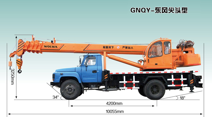 GNQY-東風尖頭型吊車是是一款性能好操作靈活的12噸小型汽車起重機,以東風尖頭汽車吊裝底盤做行走,駕駛更舒適、安全。可安裝電機泵站,直接以380V電源作動力,節(jié)約環(huán)保。該產(chǎn)品通過全國機動車公告公示,在全國各地均可上牌照,并且購置費及其他營運費用全免,產(chǎn)品輕便靈活,價位低廉,適用于農(nóng)村及城鄉(xiāng)結合部工作。低價位投資,高檔產(chǎn)品回報。